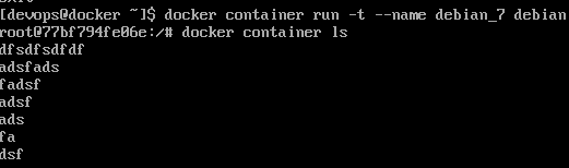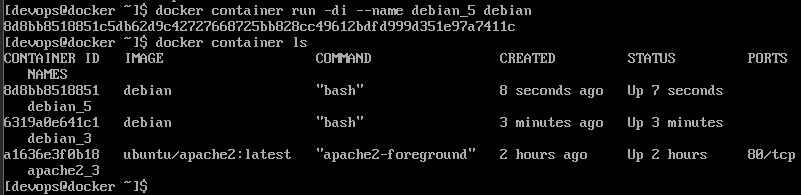 docker container run -t --name debian_7 debian