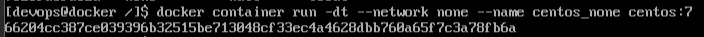 $ docker container run -d -t --network none --name test_none devops2341/network-multitool:latest (IP와 관련된 도구가 설치된 이미지)