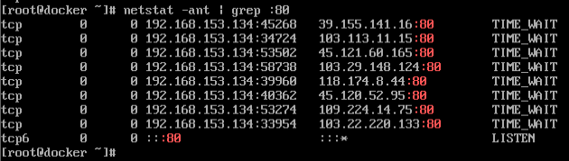 netstat -ant | grep :80 (80번 포트 열려있는지 확인)