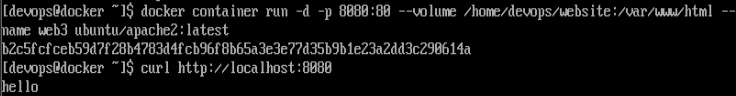 $ docker container run -d -p 8082:80 --volume vol1:/var/www/html --name web3 ubuntu/apache2:latest