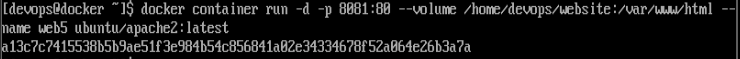$ docker container run -d -p 8082:80 --volume vol1:/var/www/html --name web3 ubuntu/apache2:latest