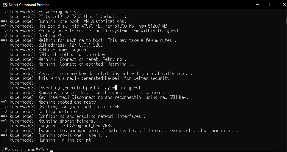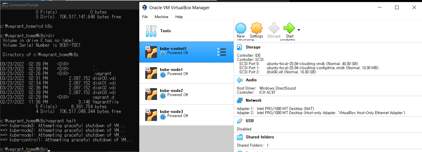 현 시점으로 Vagrant, VirtualBox, Vagrantfile (이거는 받은걸루) 다 최신 버전으루 설치했음.
