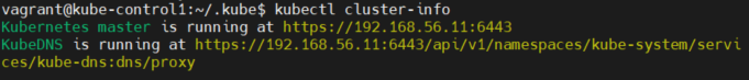 KubeDNS is running at https://192.168.56.11:6443/api/v1/namespaces/kube-system/services/kube-dns:dns/proxy