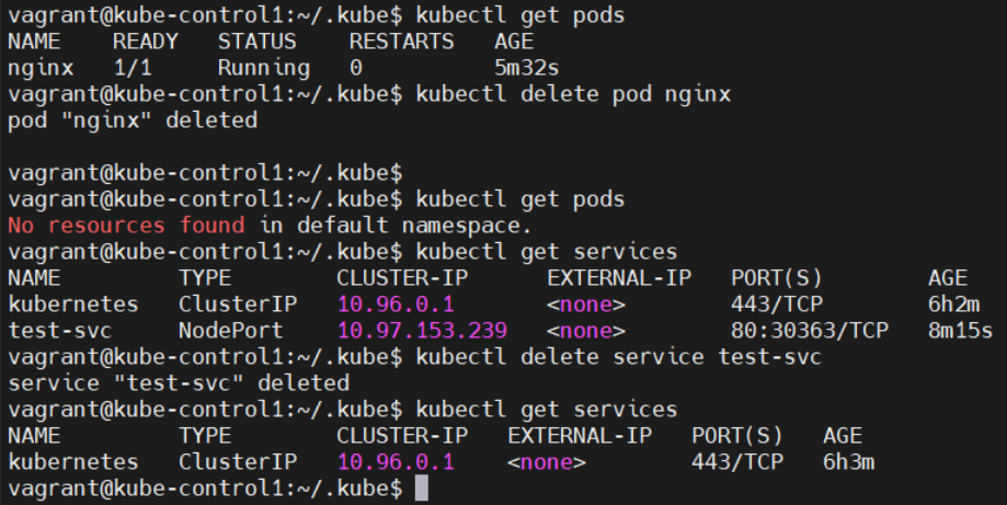 yaml파일 작성 전에 지금 돌아가는 pod이랑 서비스를 지워보자