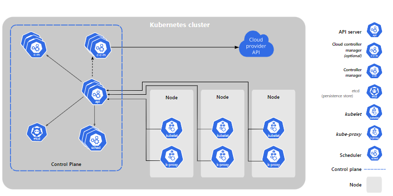 쿠버네티스는 크게 Control Plane과 Node로 이루어지는데, Control Plane은 Node를 관리하는 머신이고