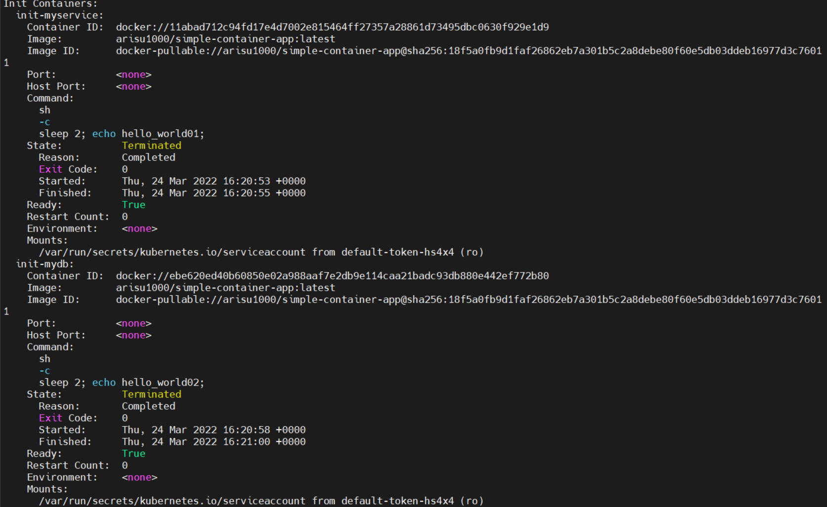 command: ['sh', '-c', 'sleep 2; echo hello_world01;']