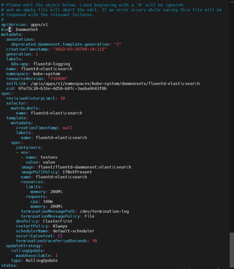 kubectl edit daemonsets fluentd-elasticsearch -n kube-system