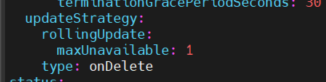 maxUnavailable : RollingUpdate 과정에서 사용할 수 없는 최대 파드 갯수(기본값 : 25%)
