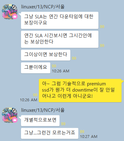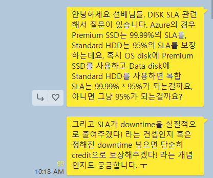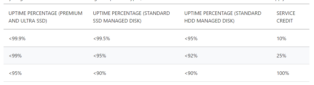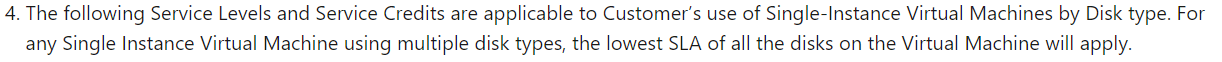 이 부분을 보면 SLA의 측면에서는 단순히 VM이 갖고 있는 모든 종류의 디스크 중 가장 낮은 SLA를 따라가게 된다.