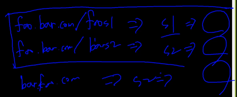 foo.bar.com/foos1로 접근하는 애는 서비스 s1로 넘겨주고 그럼 얘가 어떤 pod으로 넘길 것. (??)