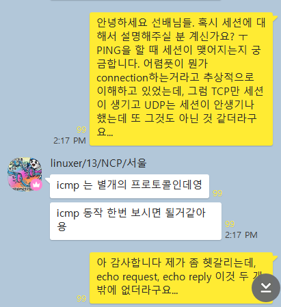 오개념이 있었다. Connection, Session, TCP, UDP, ICMP