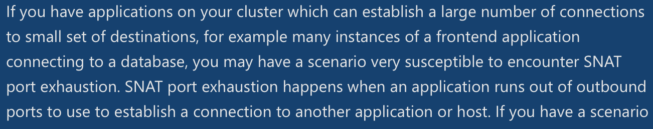 예를 들어서 outbound public ip가 하나야. 그러면 한 노드당 포트를 1024개 쓸 수 있어 (왜그런진 모르겠는데 노드 48개 있으면 각 노드당 1024포트 갖는다고 예시가 들어져있음)