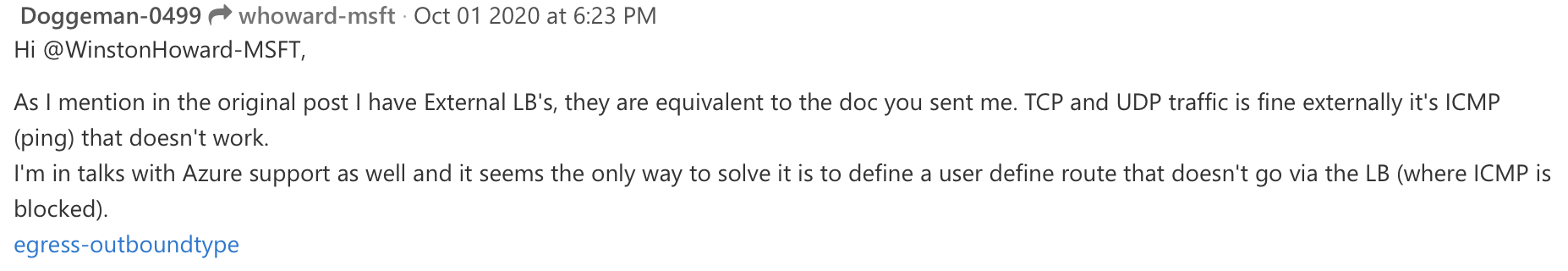 그런데 aks의 pod에서는 외부(8.8.8.8)로 ping이 안간다.