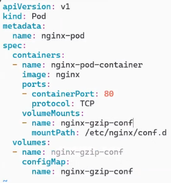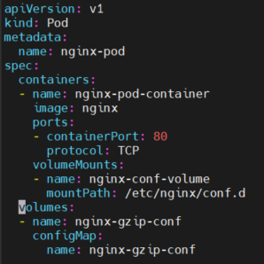 - name: nginx-gzip-volume #(1. configMap에서 conf파일 가져와서 볼륨 만들고 여기서 만든 볼륨을)