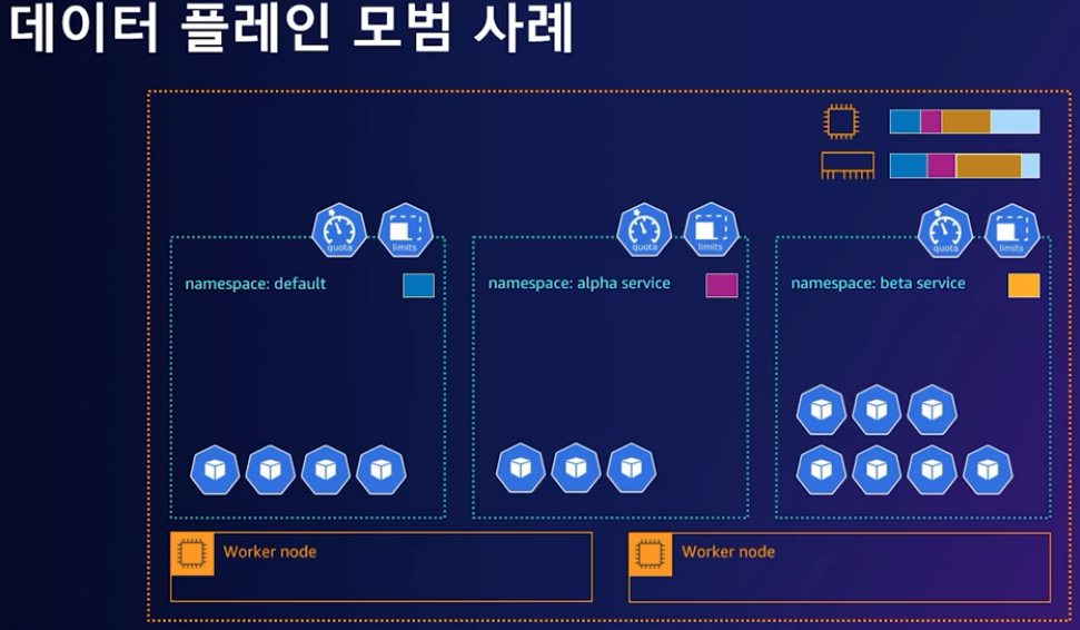 -> 네임 스페이스로 할당량을 제한함으로써, 쿠버네티스 운영자들은 리소스로 인한 장애가 전체 클러스터로 전파되는 것을 막을 수 있다.