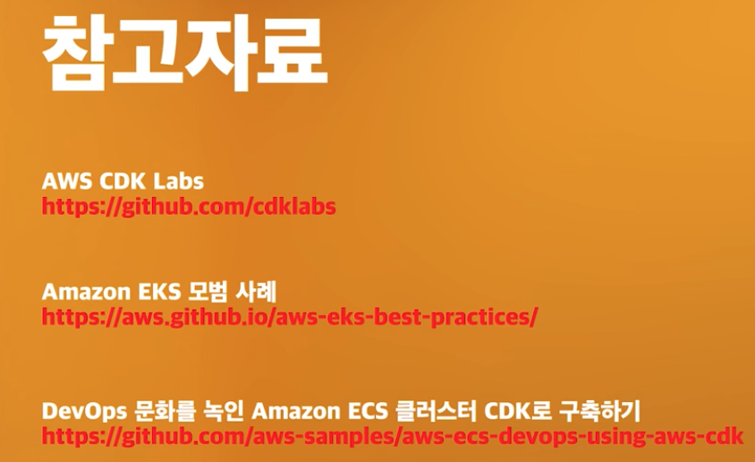 그리고 VPC, Storage처럼 변동이 거의 없는 리소스는 별도의 CDK 스택에 정의하는 것이 모범 사례이고, 참조 값들은 환경 변수를 이용하는 것의 코드의 재사용을 높일 수 있다.