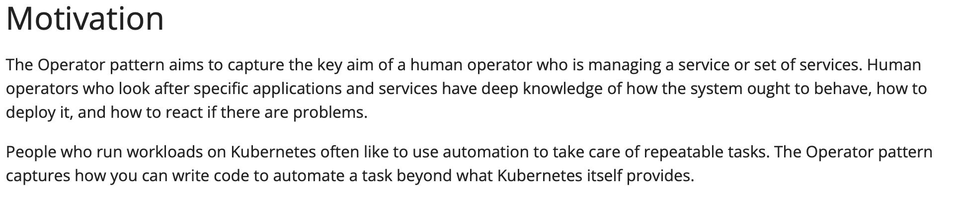 Operator의 지상 최대 목표는 human operator가 해야 하는 루틴한 일 (서비스 운영, 배포, 문제 생겼을 시 대응)을 대신하는 것이다.