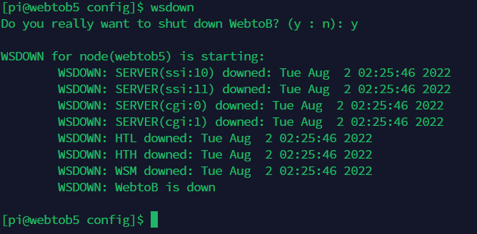 wsdown 명령어를 이용하면 webtob를 종료할 수 있다.