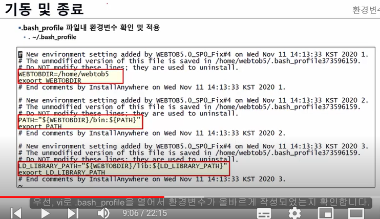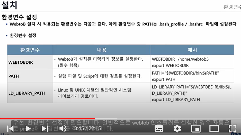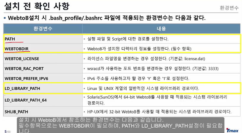 설치 시에 PATH, WEBTOBDIR, LD_LIBRARY_PATH를 설정해야 한다.