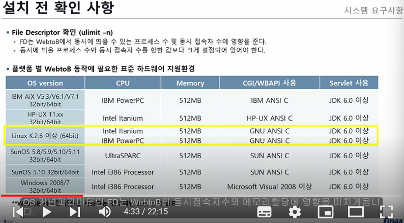 OS 커널 파라미터인 FD는 WebtoB의 동시 접속자 수와 메모리 할당에 영향을 미치게 된다.