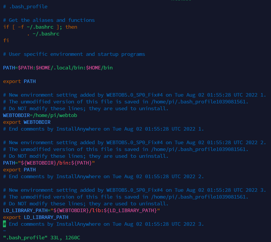 우선 환경변수 설정이 필요하다. 일반적으로 webtob 인스톨러를 실행한 경우 자동으로 profile에 환경변수를 작성하게 된다.