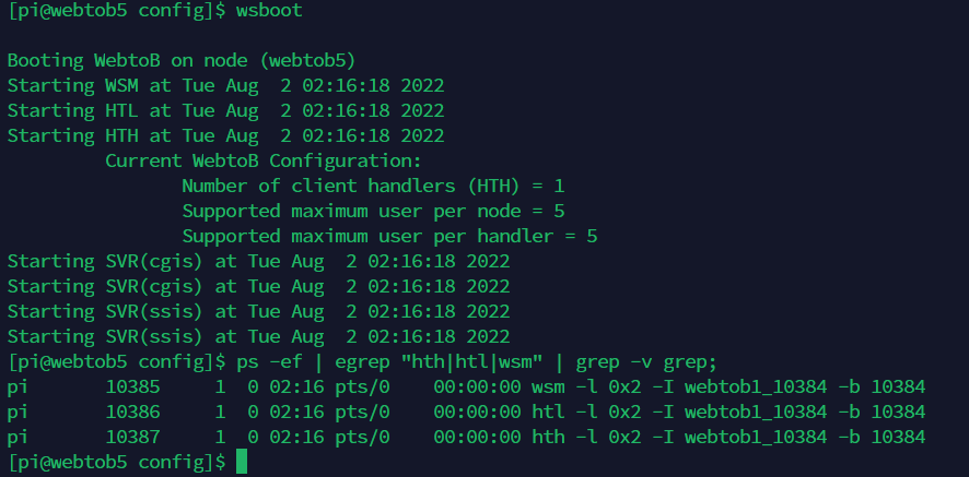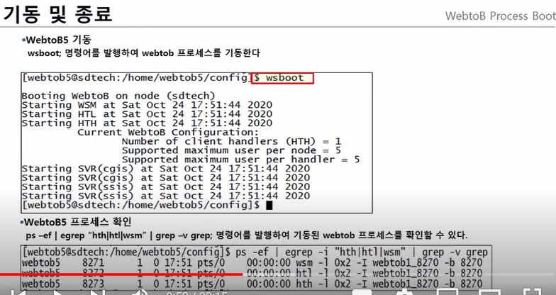 그 다음에 wsboot 명령어로 webtob 프로세스를 기동할 수 있다.