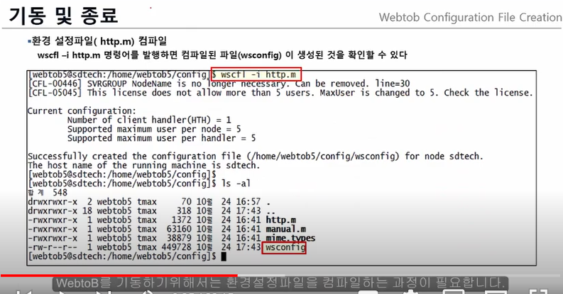 명령어를 실행하면 webtob는 컴파일된 wsconfig 파일을 읽어서 부팅하게 된다.
