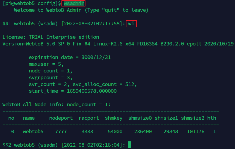 WebtoB5부터 설치 시 기본적으로 Trial 라이센스가 포함되어 있다.