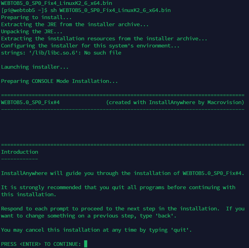 webtob 설치 시 WEBTOBDIR, PATH, LD_LIBRARY_PATH가 profile에 설정되어 있는지 확인해야 한다.