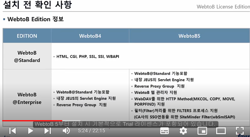 참고로 WebtoB에 내장되어있는 서블릿 엔진을 사용하는 경우에는 JDK가 설치되어 있어야 한다.