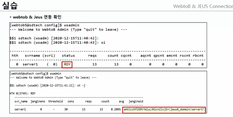 webtob와 JEUS에 로그인해서, 연동되어있는 것을 확인할 수 있다.