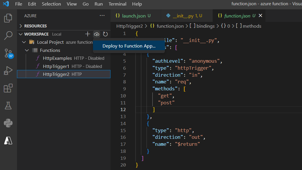 1) Azure Functions core tools를 설치하고 재부팅을 한번 해줘서 된걸 수도 있고 (유력)