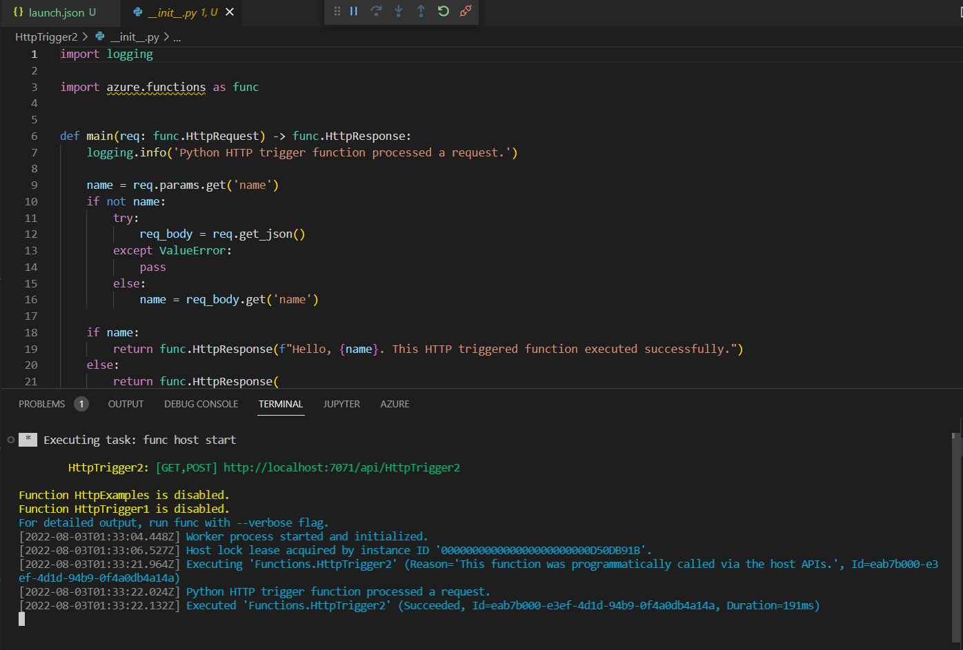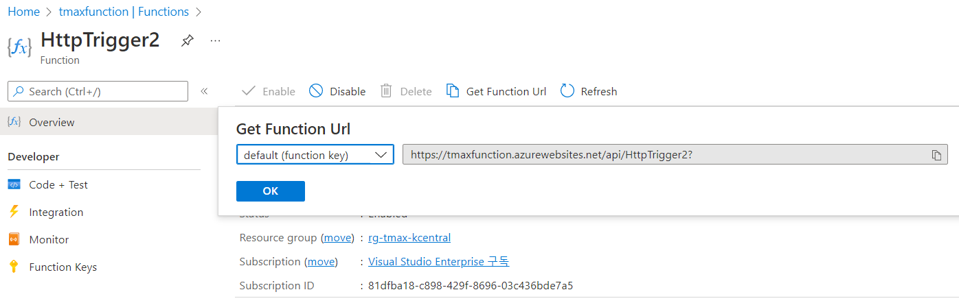 단순히 http trigger 예제 따라하는건데!!