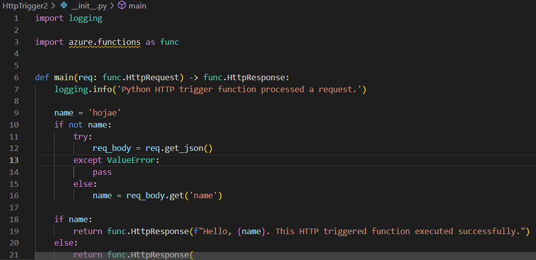 단순히 http trigger 예제 따라하는건데!!
