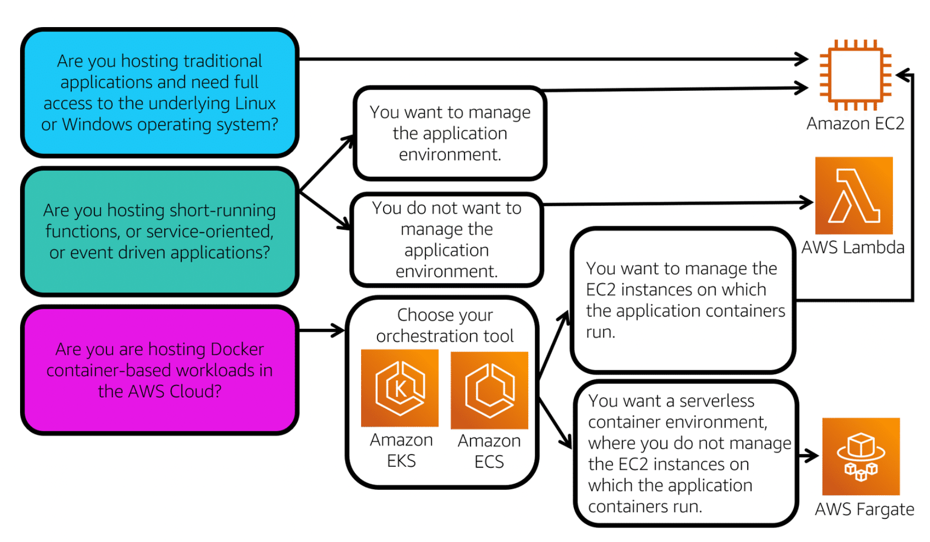 If your applications do not need to access the underlying operating system directly, you should consider the application type. Applications that consist of short-running functions, or service-oriented event-driven applications, are a good fit for deploying to Lambda if you do not want to manage the underlying application environment. Otherwise, Amazon EC2 is a good choice.