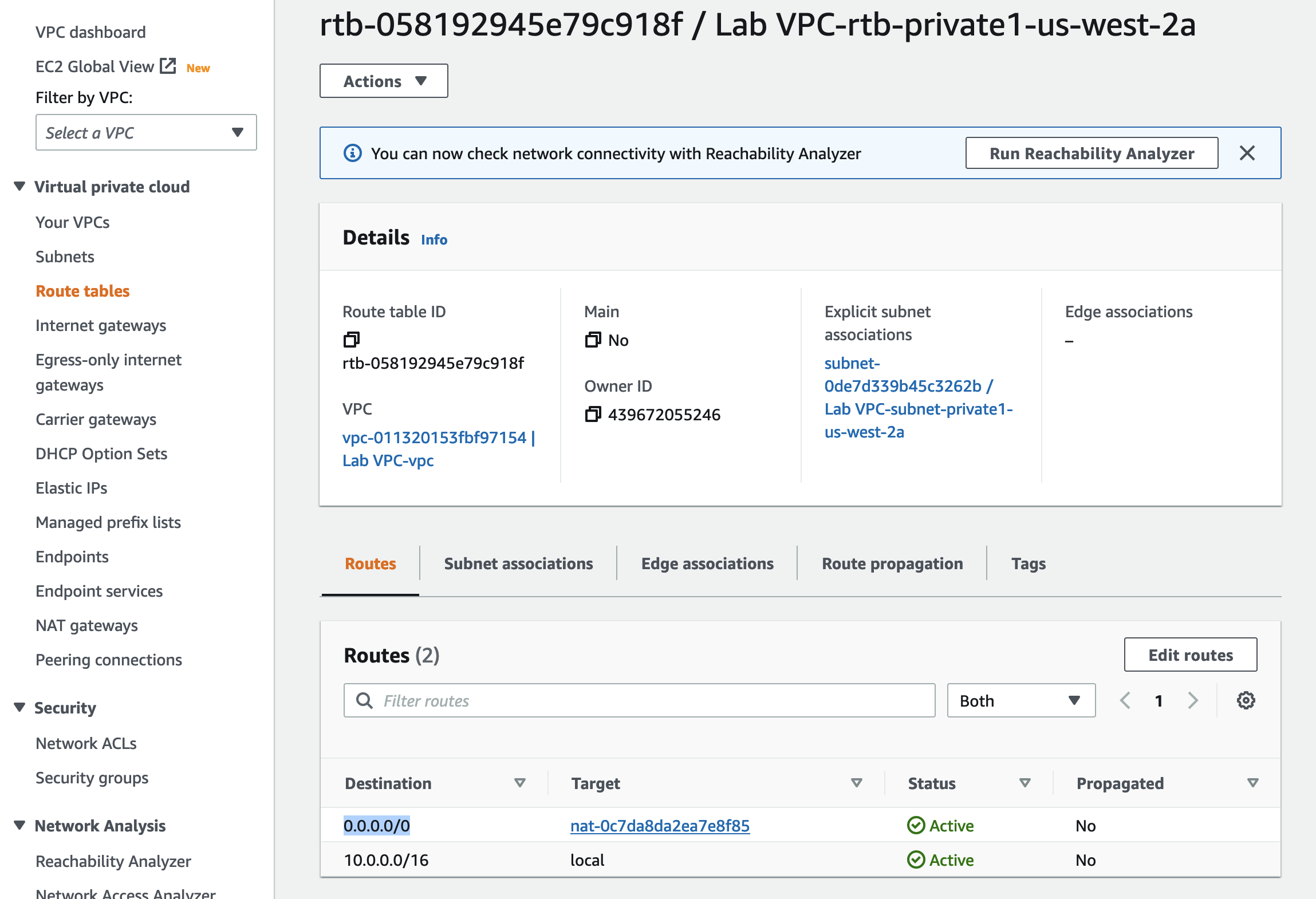 ㄴ 0.0.0.0/0으로 향하는 모든 traffic을 target으로 routing한다.