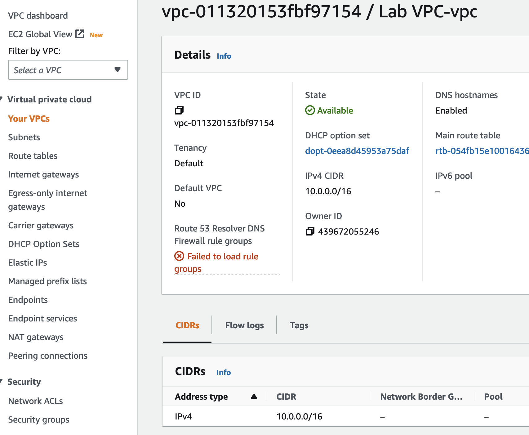 추측) 10.0.0.0/16을 향해서 가는건 그냥 10.0.0.0/16으로 보내라는 것 같다. (즉, 자기들끼리 통신 허용)