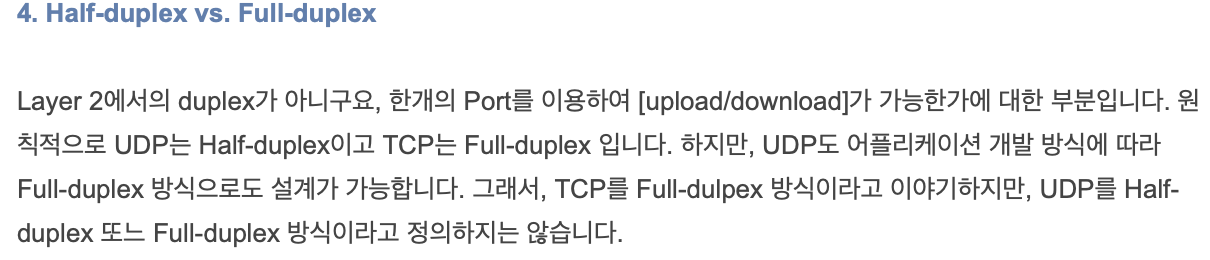 - full duplex (데이터를 보내면서 받을 수 있음)