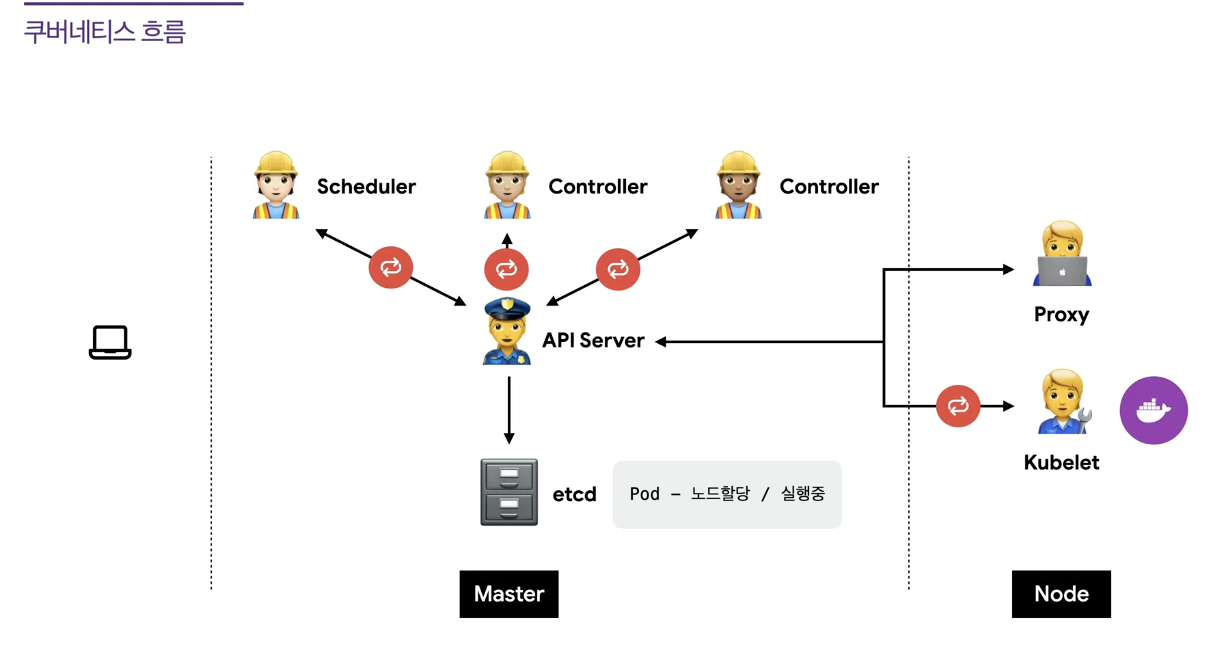 1. 관리자가 Pod을 추가해달라구 요청. (관리자 -> API Server)