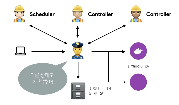 컨테이너 하나가 떠있었는지 안떠있었는지, 네트워크, 노드 체크하는 것들을 다 Controller라구 함