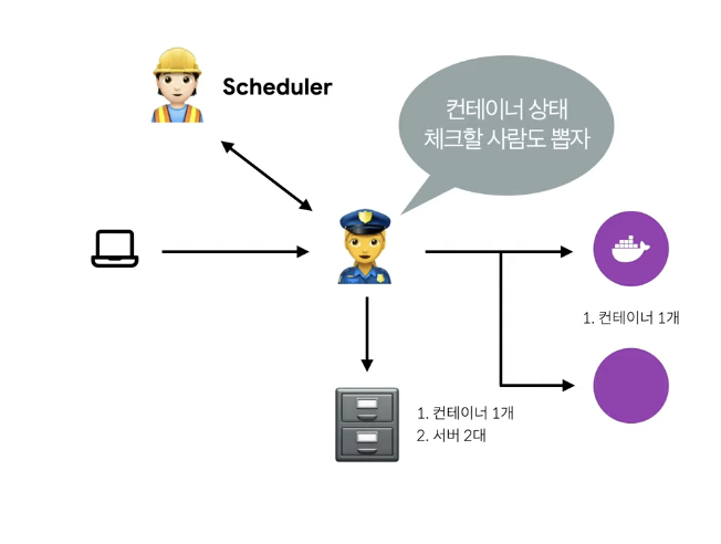 라고 계속 컨테이너 상태를 체크하는 사람이 Scheduler야.