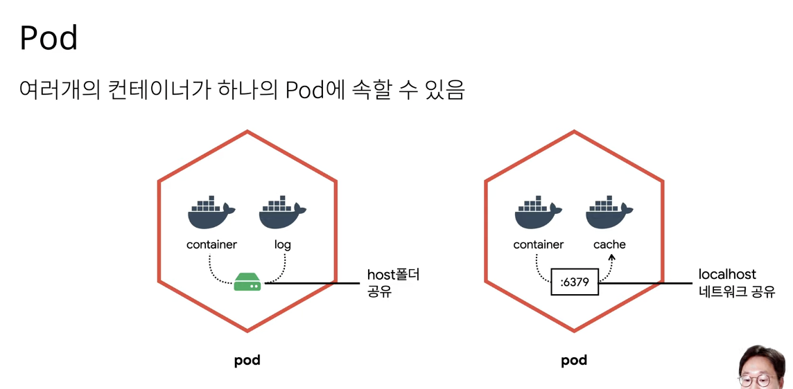 두 개의 컨테이너가 하나의 Pod에 속할 수도 있다. (여러 개의 컨테이너두 가능)