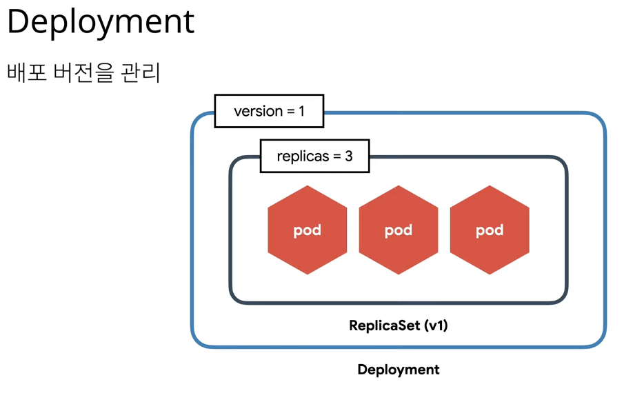 Replicas set을 감싼, 배포 버전을 관리하는 넘