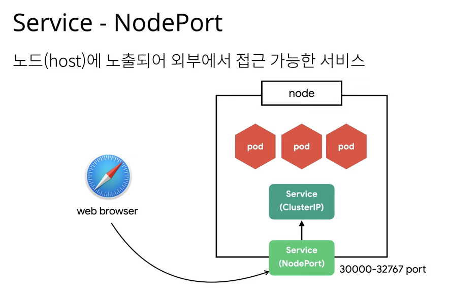 외부에서 접근하기 위해서 NodePort라는 개념이 생겼어.