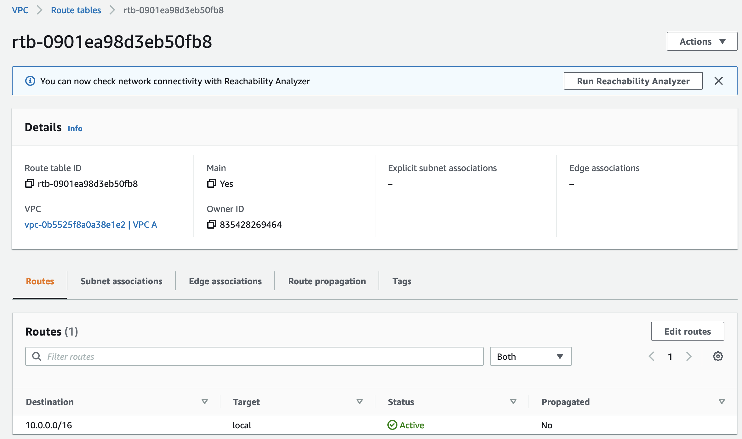 main이 yes면 default route table임