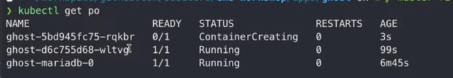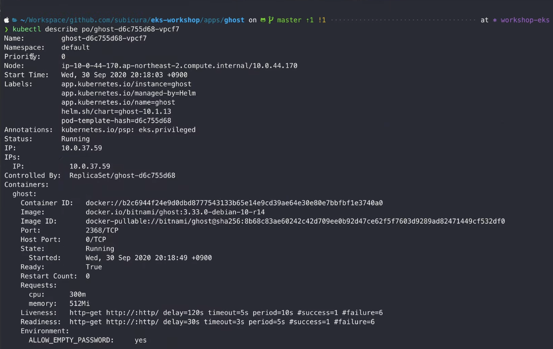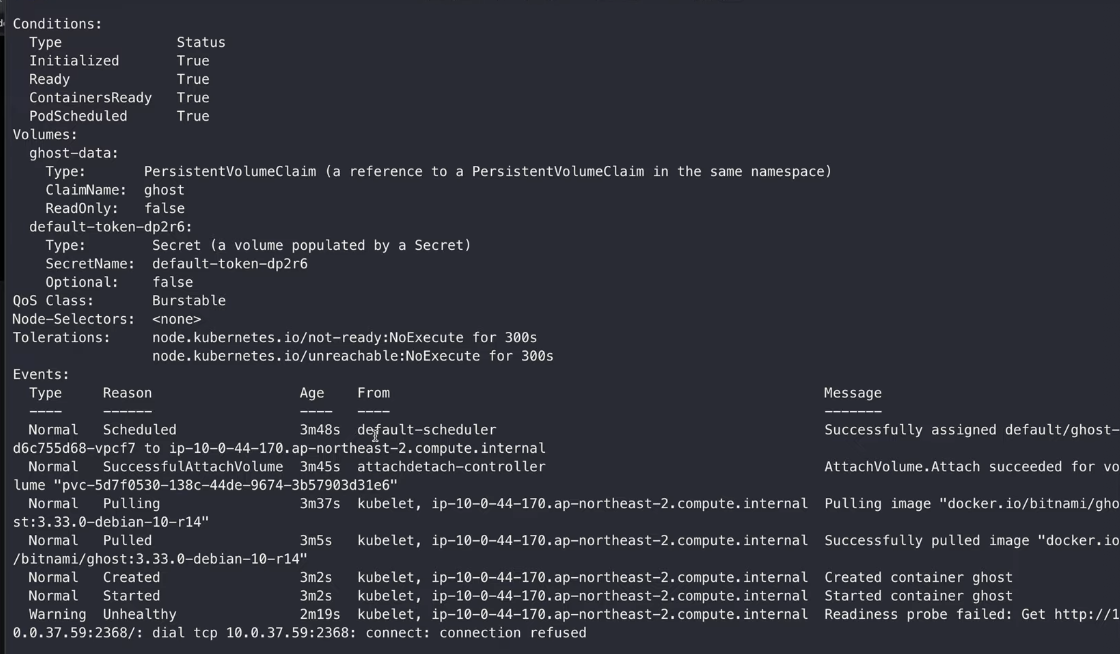 kubectl describe po/ghost-d6c755d68-vpcf7 을 하면 상세 정보를 볼 수 있당