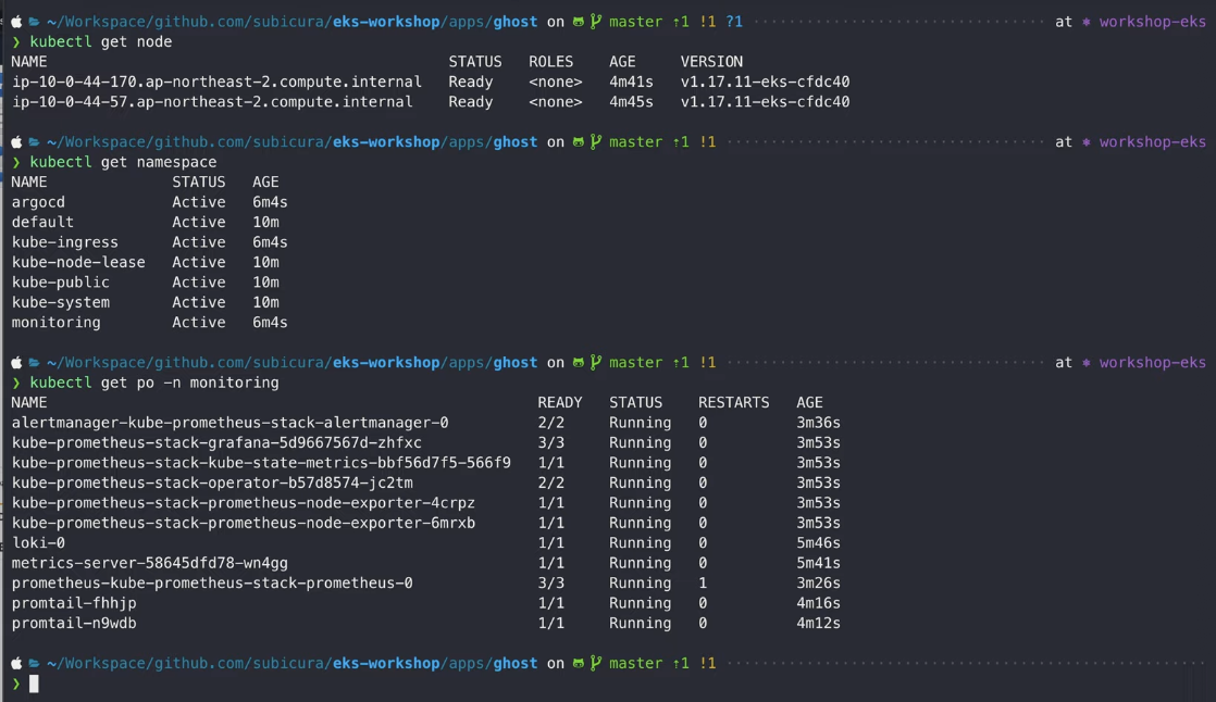 kubectl get po -n monitoring #여기서 po는 pod의 약자. 글구 사실상 Pod이 Container라구 할 수 있어.