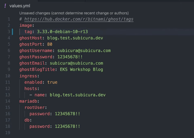 helm install ghost bitnami/ghost \ --values values.yml