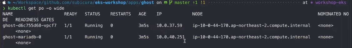 kubectl describe po/ghost-d6c755d68-vpcf7 을 하면 상세 정보를 볼 수 있당