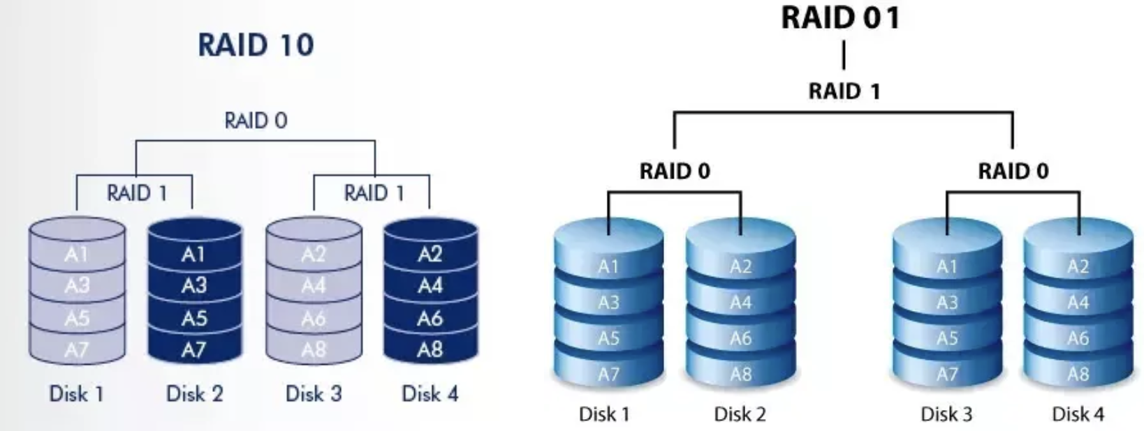 RAID 10, RAID01은 다음과 같은데